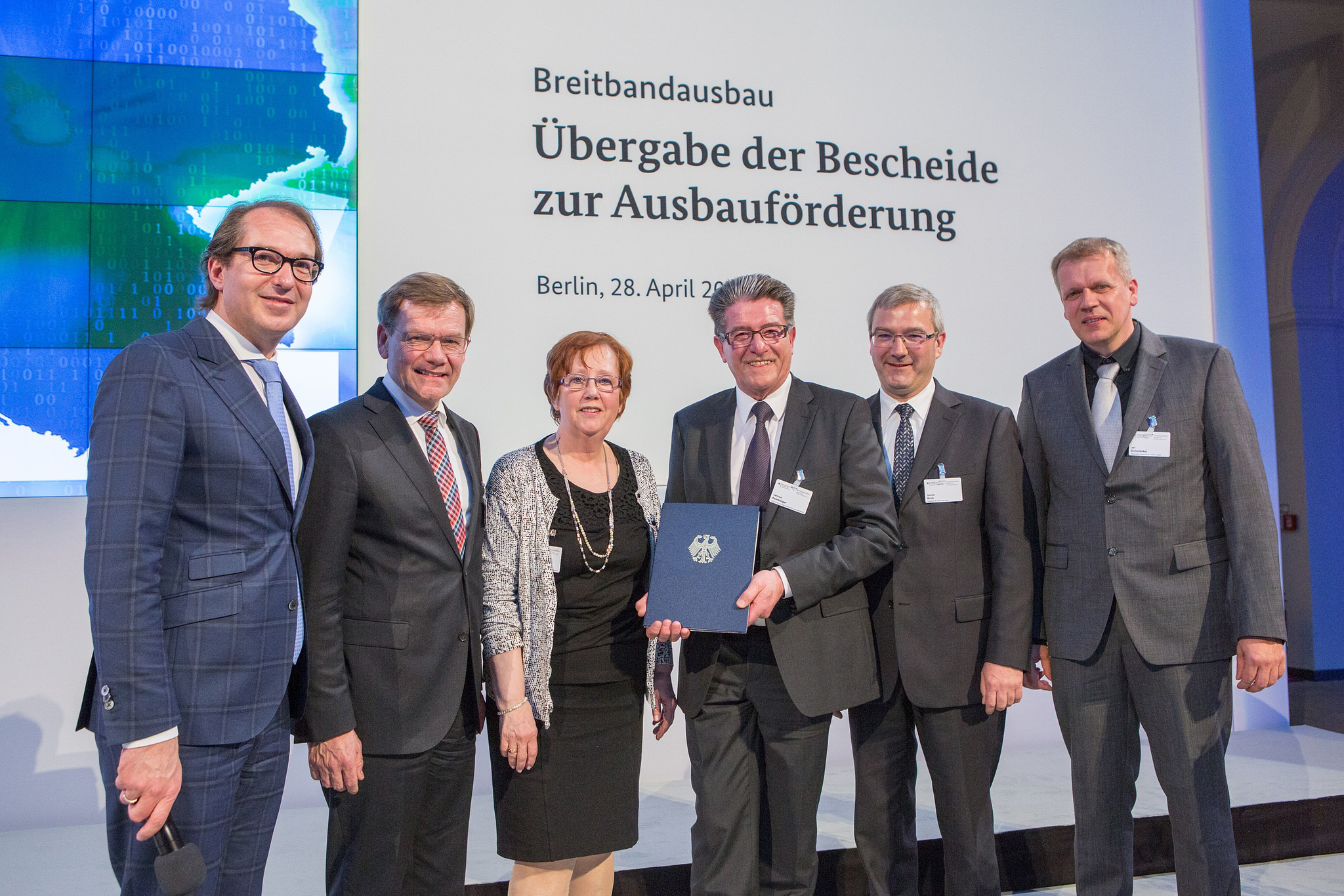 Gestern Abend übergab Bundesverkehrsminister Alexander Dobrindt im Rahmen einer feierlichen Veranstaltung die ersten 55 Förderbescheide mit einem Gesamtvolumen von 420 Millionen Euro für konkrete Ausbauprojekte. Damit erhalten die Landkreise und Kommunen, deren Anträge bewilligt wurden, schnell und unbürokratisch die Möglichkeit, das schnelle Internet auszubauen.