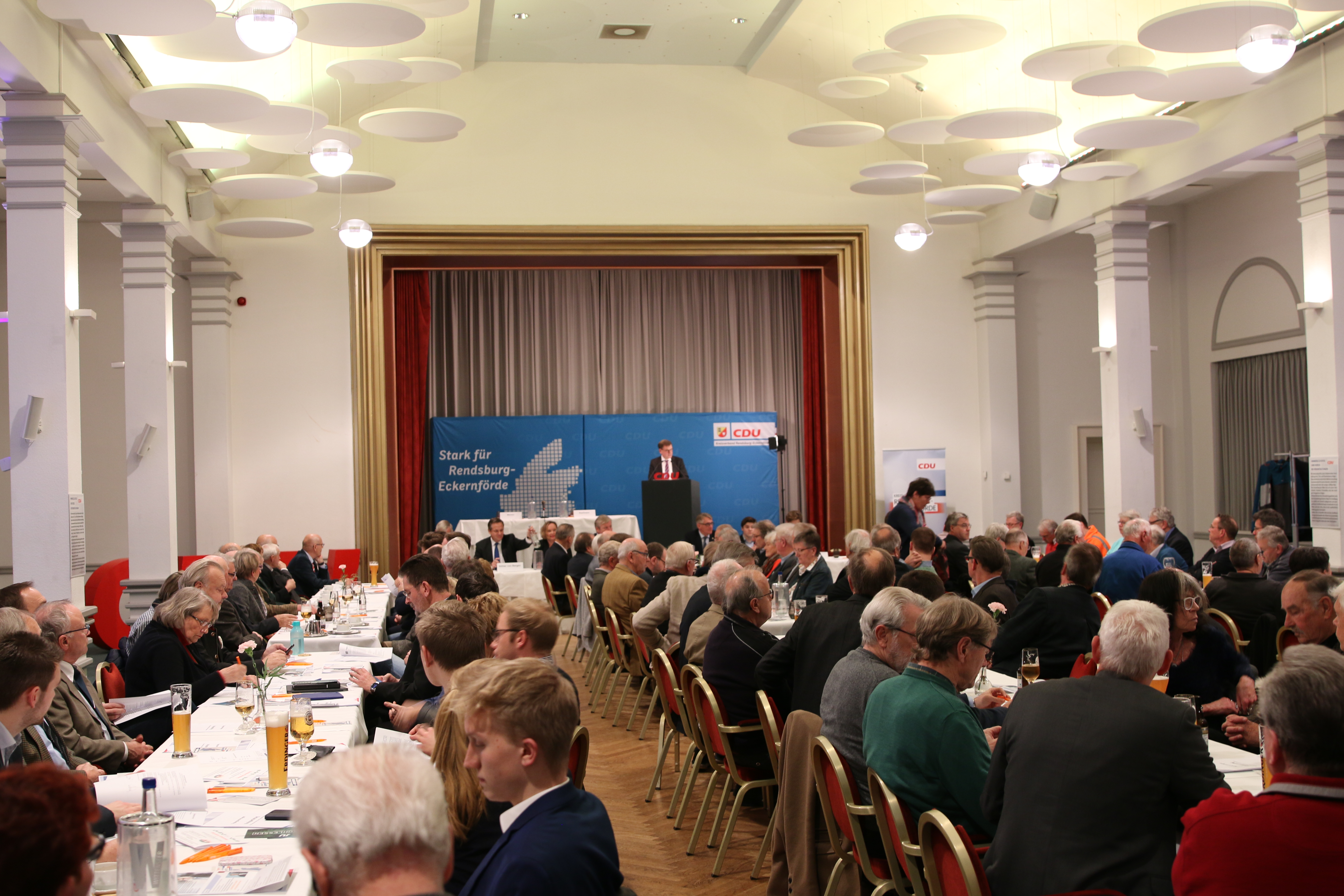 Als Ehrengast konnte der Kreisvorsitzende Johann Wadephul den niedersächsischen CDU-Vorsitzenden und dortigen Wirtschaftsminister Bernd Althusmann begrüßen. Der Niedersachse hielt eine kurzweilige Rede, in der er unter anderem über hiesige Verkehrsprojekte wie die Sanierung des Kanaltunnels oder den Neubau der Rader Hochbrücke sowie die nötigen Investitionen in die Digitalisierung sprach: „Wenn Deutschland weiter so erfolgreich sein will, müssen wir dafür sorgen, dass wir in der Welt mithalten. Dafür brauchen wir 5G bis zur letzten Ackerfurche.“