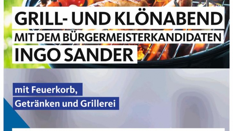 Die CDU Kronshagen und Bürgermeisterkandidat Ingo Sander laden ein zum Grill- und Klönabend im Innenhof des Bürgerhauses Kronshagen am Samstag, den 23.Oktober 2021 ab 17:00 Uhr.